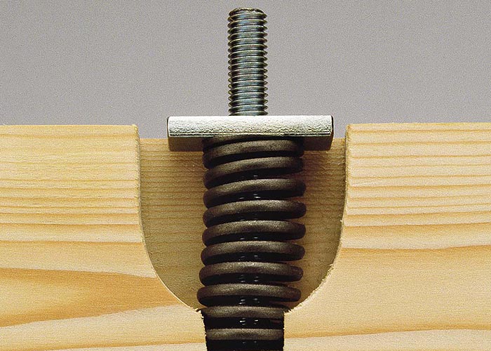 Stabile und maßhaltige Konstruktion: Senkrechte Spannstangen und eine saunaspezifische Profilierung der Blockbohlen gewährleisten optimale Stabilität und Dichtigkeit. Die Blockbohlen aus nordischer Fichte verziehen sich kaum noch. Die senkrechten Spannstangen halten die Konstruktion exakt im Rahmen. Sie können sehr einfach nachgespannt werden.